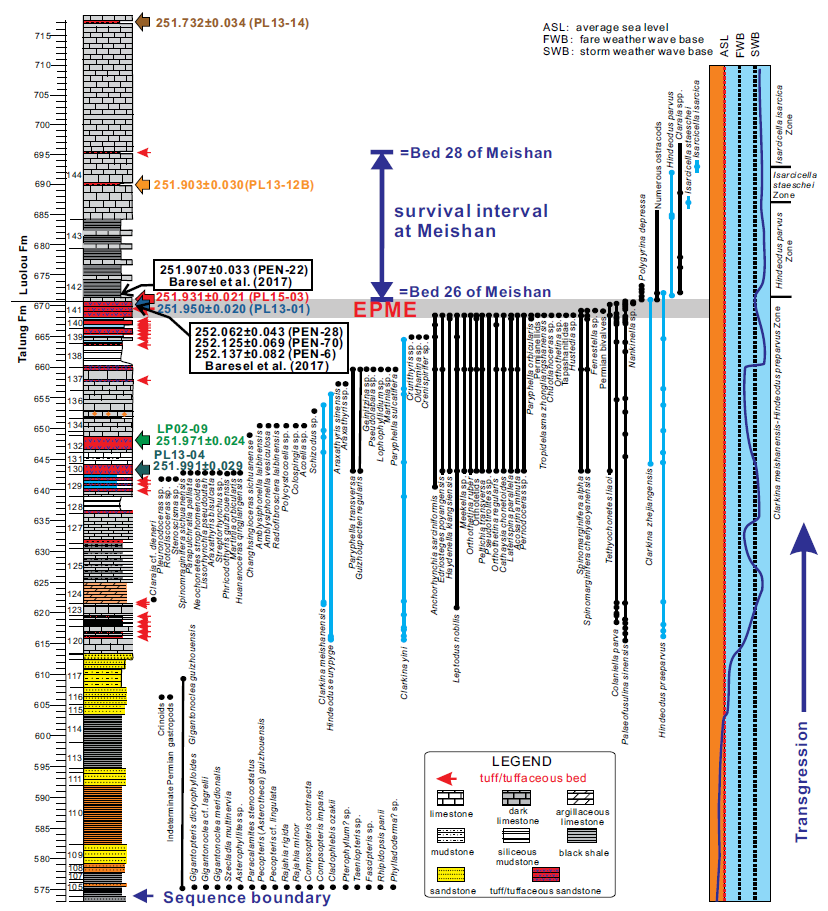 蓬莱滩剖面二叠纪末大灭绝发生位置